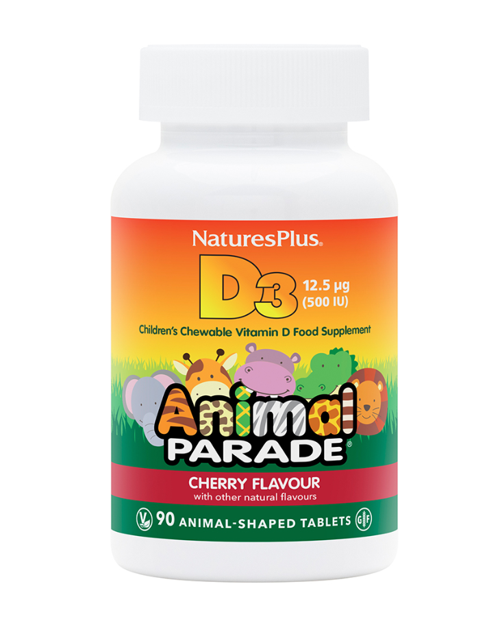Animal Parade Children’s Chewable Vitamin D3 has a delicious black cherry flavour with fun animal shapes children love. Vitamin D is essential for the development and maintenance of healthy bones and teeth and also contributes to the normal function of the immune system.